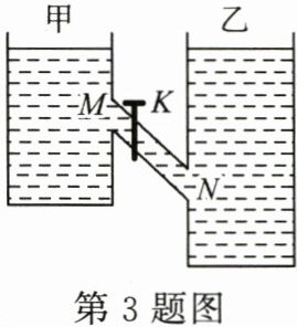 3. (9分)如图所示的甲、乙两容器中盛有水,水面相平,之间有斜管相通,K是阀门。当K打开后,水会