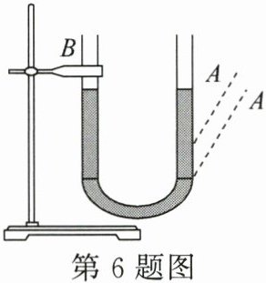 6. (4分)(2025·济南模拟)如图所示的装置中,两端开口的U形管装有一定量的水,将A管向右倾斜,稳定后A管中的水面将(