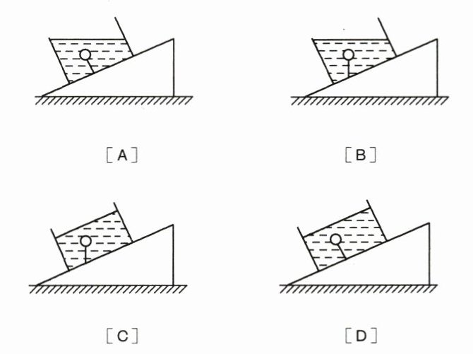 10. (4分)在某次实验操作时,小刚在一方形水槽底部系住一细棉线,细棉线另一端系一乒乓球,乒乓球完好,再将水槽静放在斜面上(斜面放置于水平地面上并保持静止),然后,他向水槽中加水,待水足够多时,他观察到的现象与下列哪幅图一致? (