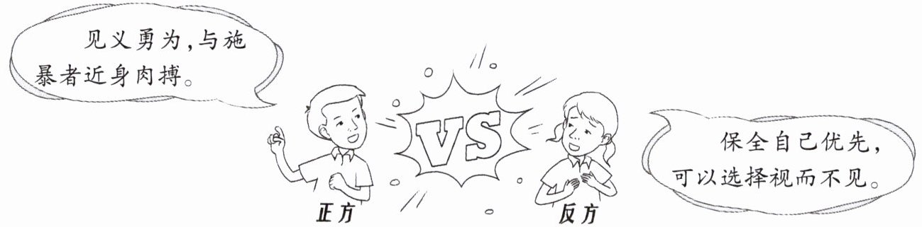 (1)两种观点都不赞成。守护正义需要勇气和智慧,一方面要敢于斗争,相信正义必定战胜邪恶;另一方面要讲究策略,寻找有效的方法,做到见义智为。