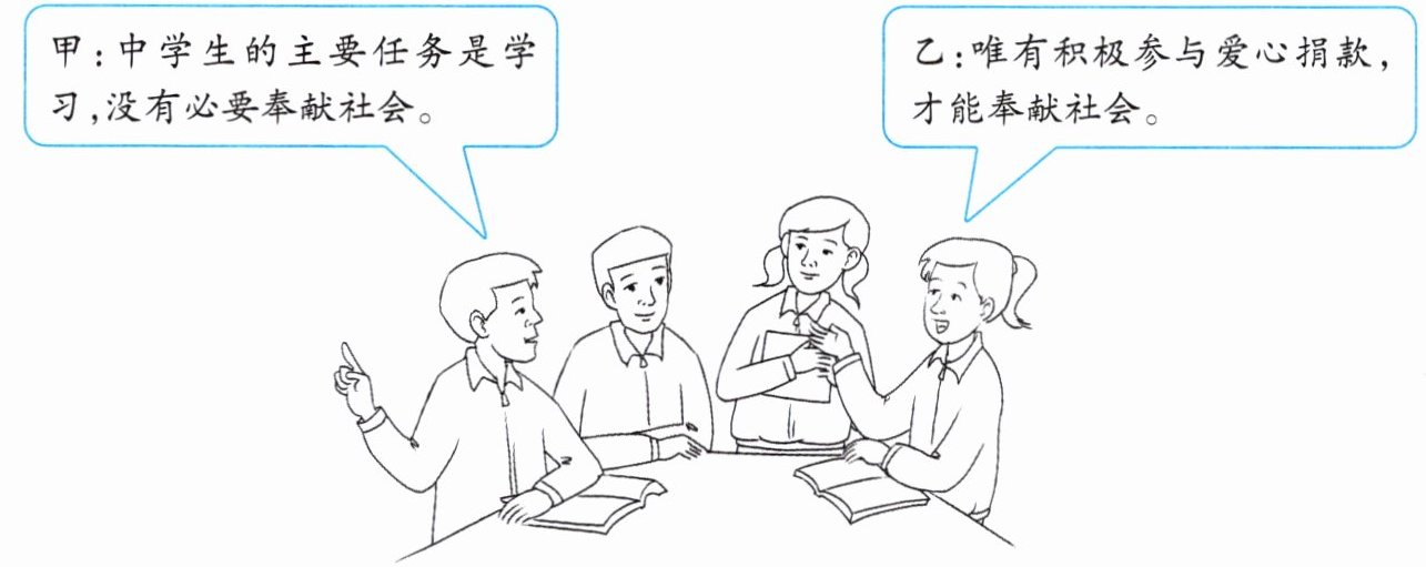 乙同学的观点是错误的。奉献社会途径多样,如做好自己的本职工作、投身社会服务、环境保护、敬老助残等皆是。青少年应踊跃参与志愿服务,借此增长知识、提升本领、锻炼才干,助力营造关爱他人、奉献社会的良好风尚。