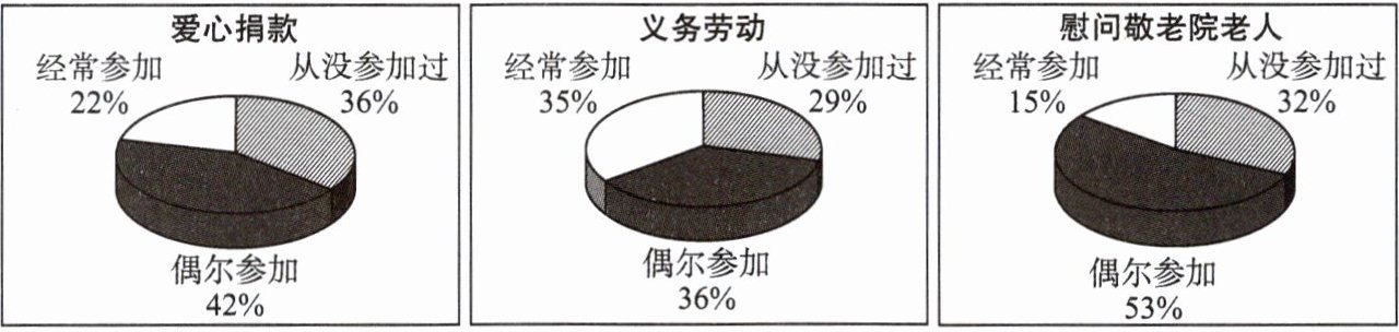 服务社会、奉献社会是新时代学生提升社会实践能力的有效途径。为此,某中学对学生参加服务社会活动的情况进行了一次抽样调查。下面是调查统计结果。