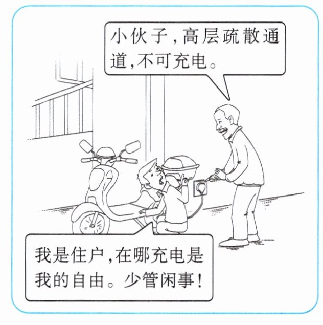 (1)自由意味着在遵守道德、纪律、法律等社会规则的前提下,人们能够依照自己的意志活动。漫画中小伙的充电自由必须是在《高层民用建筑消防安全管理规定》这一法律规定内的自由。