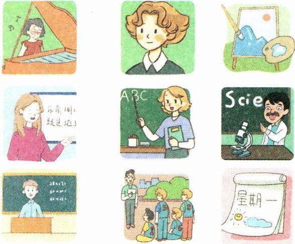 Hello, I’m Lucy. Today is Monday(星期一). Our new PE teacher will come today! He is Mr Smith. He’s tall and strong. And Miss Chen is our Chinese teacher. She is young and funny. Our science teacher is Mr Zhao. He’s old and kind. Oh! Do you know Miss Liu? She is our music teacher. She is quiet and friendly.