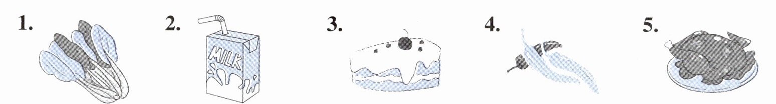 4. 我最喜爱的食物是鸡肉。它很美味。