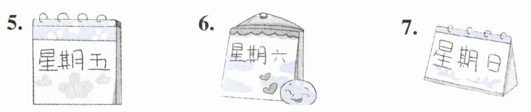1.Monday 2.Tuesday 3.Wednesday 4.Thursday 5.Friday 6.Saturday 7.Sunday