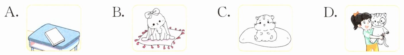 1.B 兔子涂蓝色 2.C 仓鼠涂棕色,垫子涂绿色 3.D 猫涂红色 4.A 书涂白色