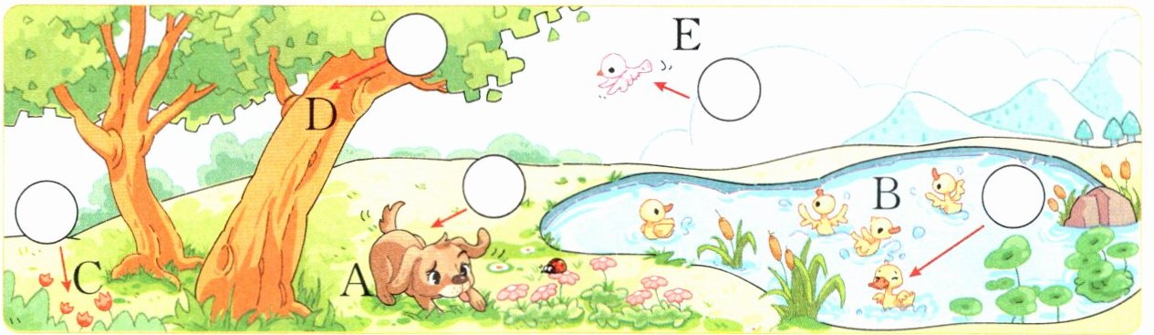 一、听录音,用数字给 Zoey 在公园看到的景色排序。