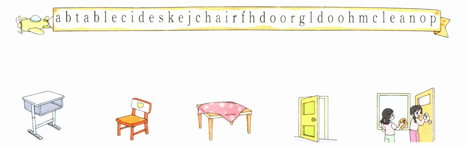 三、圈一圈,连一连。(从字母条中圈出正确的单词,并与图片连线)