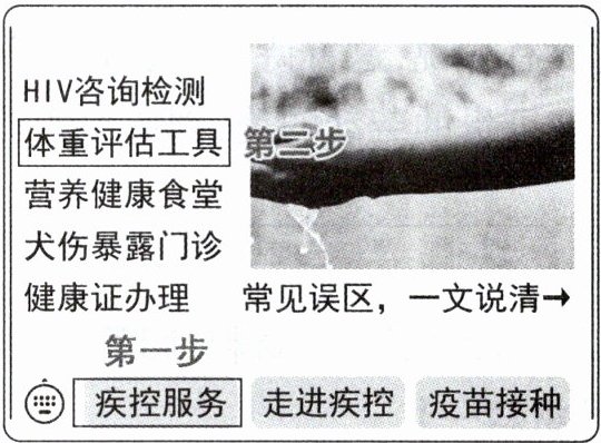 3. 奶奶,首先您要登陆江都疾控公众号,在左下方的“疾控服务”中找到第二个选项“体重评估工具”,点击进去;(2分)然后输入您的出生年月、性别、身高、体重、腰围等基本信息,就可以得知自己的胖瘦程度了。(2分)4. 小明,靠节食减肥并不科学。因为肥胖成因复杂,单一节食减重的方案往往收效甚微。你可以借助“江小防健康体重计算器”,获取个性化体重管理建议,也可参考疾控中心公众号科普文章,通过健康饮食和科学运动,达到健康减重的目的。(4分)5. 我认为体重管理不仅是个人私事,更是国家大事。从材料一可知,肥胖问题已经不是个别问题,而是国民的普遍问题,必然会引发国家的关注;从材料二可知,个体减重不仅需要自己的努力,也需要社会的协同,比如需要社会改善“致胖环境”;从材料三可知,政府可以通过多种手段,帮助我们了解科学管理体重的方式。(4分)