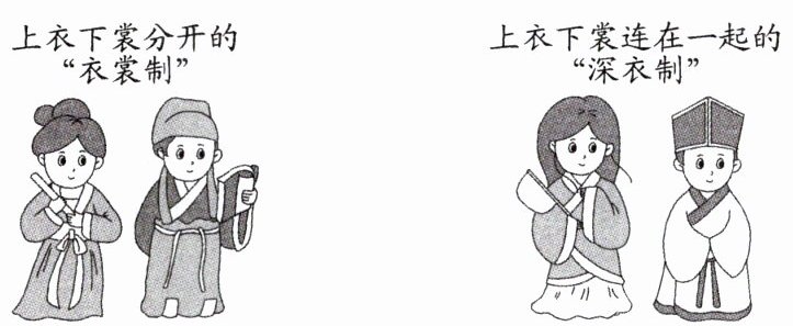 上衣下裳分开的“衣裳制” 上衣下裳连在一起的“深衣制”