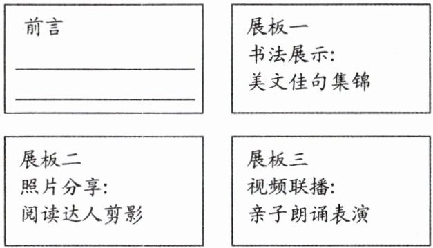 (2)任务二:学校举办主题活动成果汇报展,为吸引家长和同学前来欣赏,请写一段展板前言。(3 分)