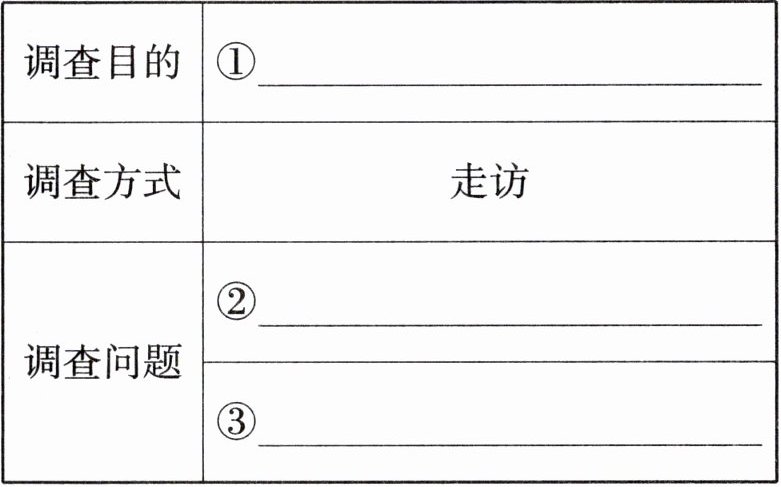 (1)①了解本地保护野生动物的情况(1 分) ②示例:本地主要有哪些野生动物? (1 分) ③示例:政府在保护野生动物方面主要采取了哪些措施? (1 分)