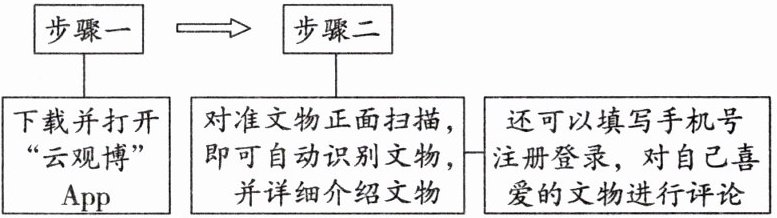 (2)妈妈非常喜欢博物馆中的秘色瓷莲花碗,请你参照下面的示意图教妈妈如何使用这款 App 来了解这件文物。(4 分)