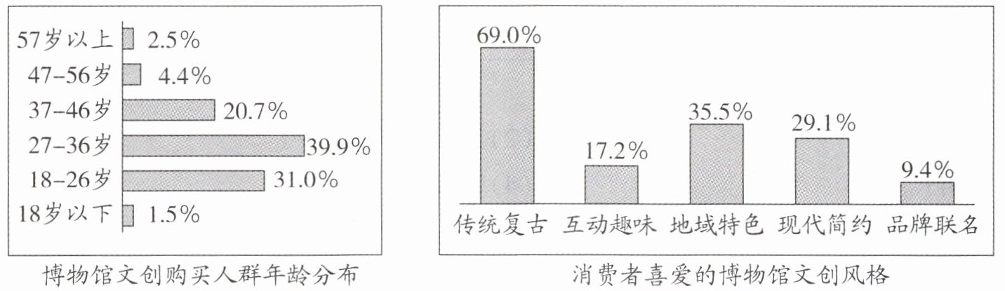 7. 18-36 岁人群是博物馆文创购买主力,说明年轻人对博物馆文创接受度高、消费意愿强。传统复古的博物馆文创风格最受欢迎,其他风格也有一定占比,消费者需求多元。
