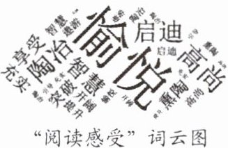 (2)从“阅读感受”词云图中任意选择一个词语,表达自己在读书过程中的感受。(至少运用一种修辞手法,不少于 30 字)