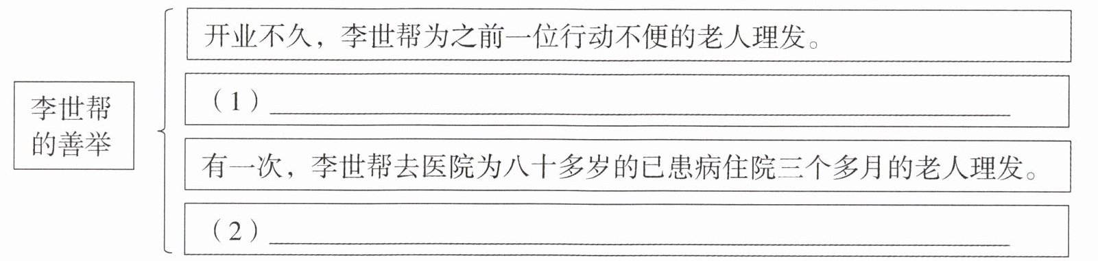 4. 全文主要叙述了老李的哪几件事?请简要概括,将思维导图补充完整。(2分)