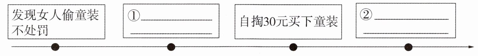 | 发现女人偷童装不处罚 | ①______ | 自掏30元买下童装 | ②______ |