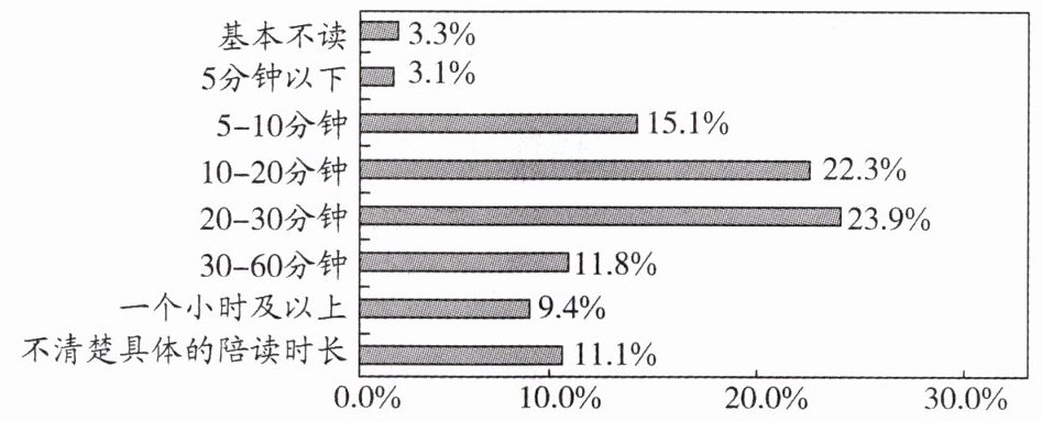 近年来,亲子阅读逐渐成为全民阅读实践新潮流。为激发学生阅读兴趣,养成阅读习惯,营造一个良好的读书环境,学校对家庭陪伴阅读现状进行了一次问卷调查,结果显示如下: