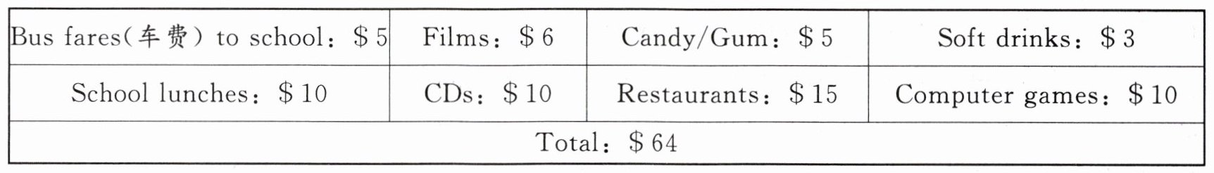 )2. If the student goes without films and soft drinks for three weeks in a row, he can save _________.A. 192