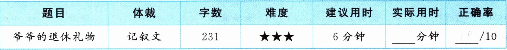 (2024·和平期中)One day, Jack's parents told him his grandpa would retire(退休) after w 1 for forty years. Jack said in s 2, “I'm only seven, so it means Grandpa has been... er... a really long time!”