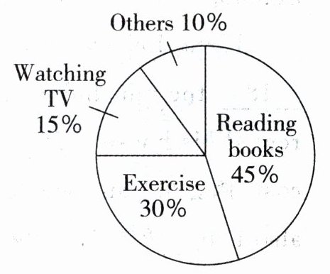 )4.You did a survey on the ways to relax in class. The pie chart tells us that ____.A.15% of the students prefer to exercise