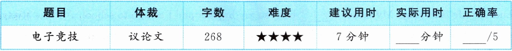 (2024·临汾期中)Hi, I'm Zhang Lei. I like playing video games(电子游戏). Many students in my school also like to play them. When you play video games with others to see who is best, it is eSports.