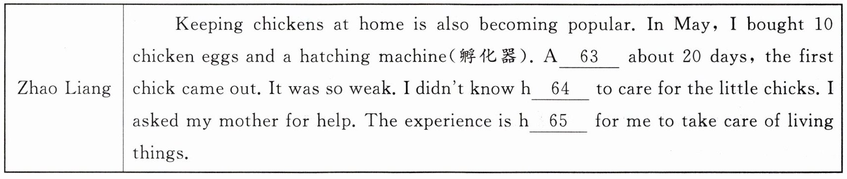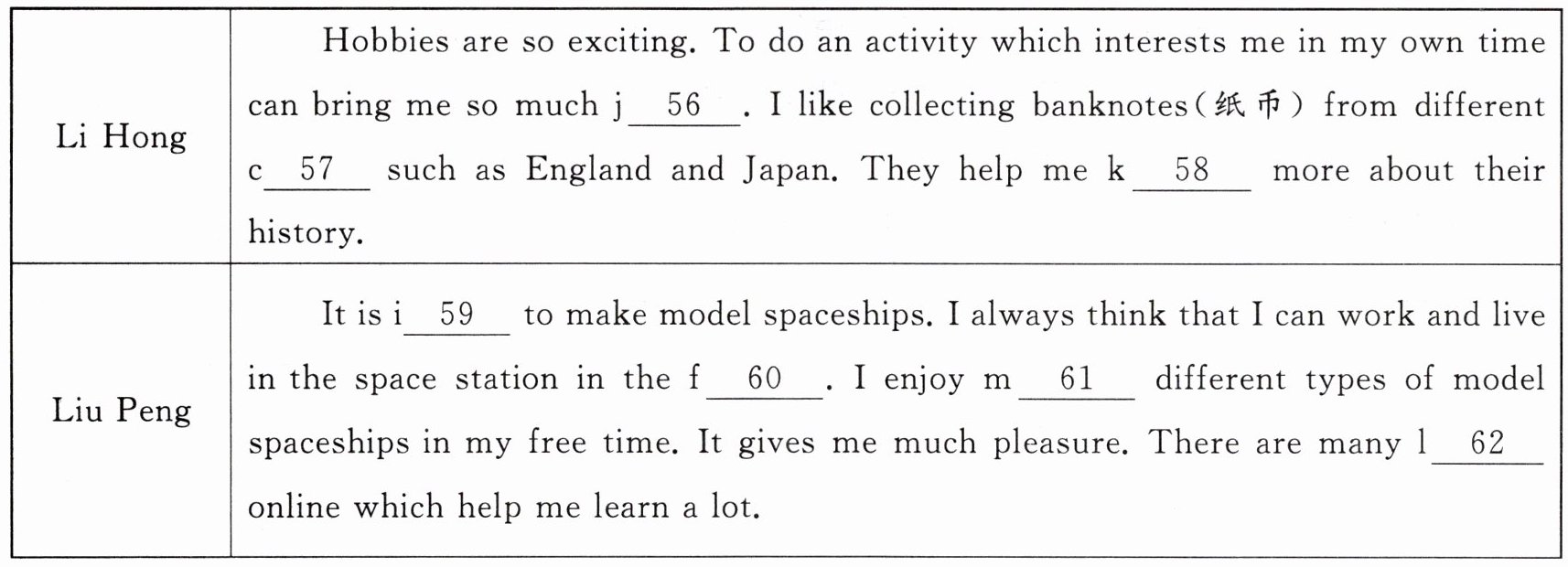 根据短文内容和首字母提示,在下文空格处填入适当的词使短文完整。(每空一词)