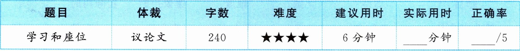 1.It was not very useful. 2.For 20 years. 3.When they sit in rows. 4.Students wasted a lot of time talking. 5.In rows. Because it helps me focus on my study.(答案不唯一,言之有理即可)