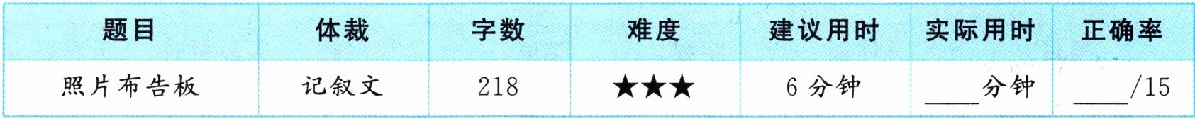 (2024·荆门期末)There is a Wall of Fame(荣誉墙) board at the back of the classroom. Every year, Mr White posts(张贴) the photos of his 1 here. It is Tuesday. Mr White comes into the 2 with the students' photos in his hand. All students would like to 3 their photos first. How 4 it is!