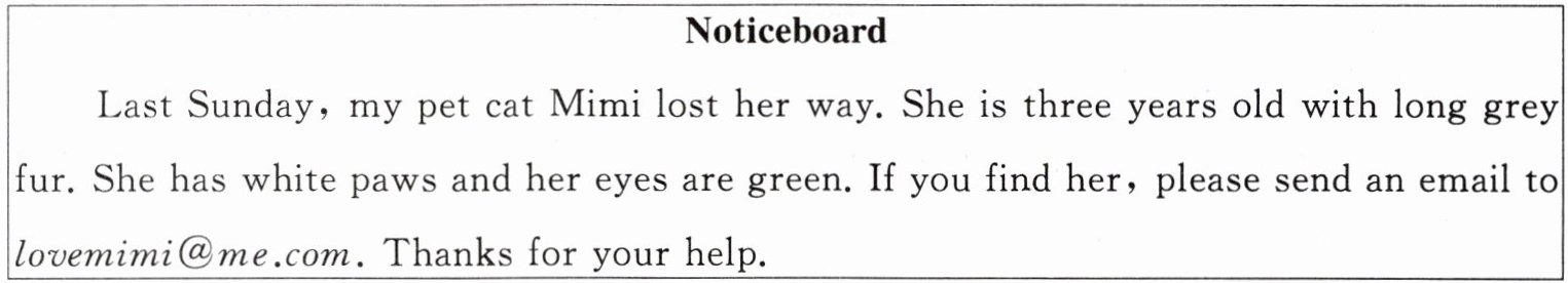 )8.The master wants to ___________.A.tell others what her cat looks like