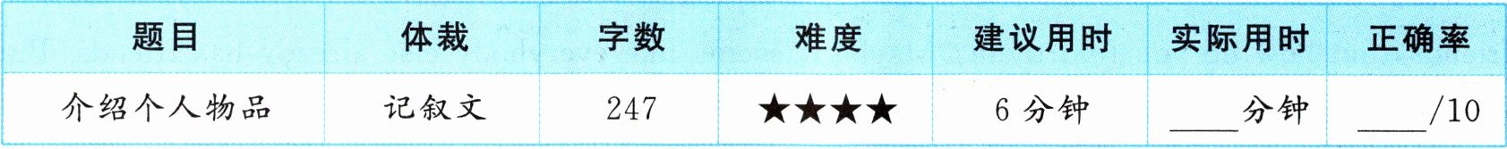 (2024·南京期中)“On the first day of school, Mr Jeffrey wants you to bring a personal item (个人物品) from home to tell the class a little about yourself. You have to s 1 it in front of the class,” Mum says to Valerie.