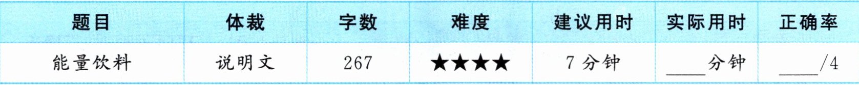 ②How about energy (能量) drinks? Sporty kids like them a lot. This kind of drink has caffeine (咖啡因) in it. It can give you more energy. But don't drink too much. Once a student wants to do well in his PE test. Hoping to have more energy, he drinks some energy drinks after a day's work. As a result, he can't sleep for the whole night and feels sleepy the next day. Of course, he does badly in the PE test.