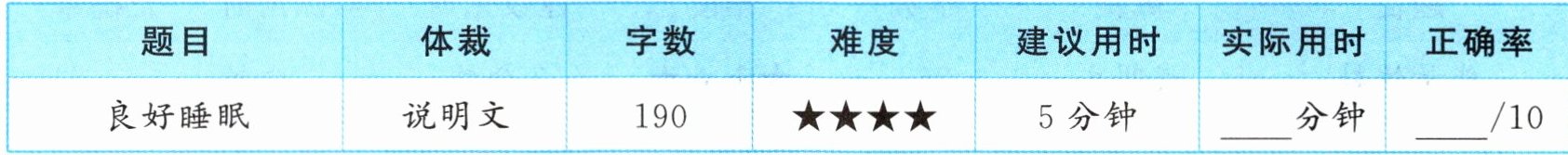 W7 you sleep at night, your brain is busy doing its “homework”. It sorts out (整理) the information you get when you work. That will surely help you to do your b8 at school. Doctors also say, “If you have p9 falling asleep at night, take a noon nap (小憩) for l10 than 45 minutes and don't nap after 3 p.m.”