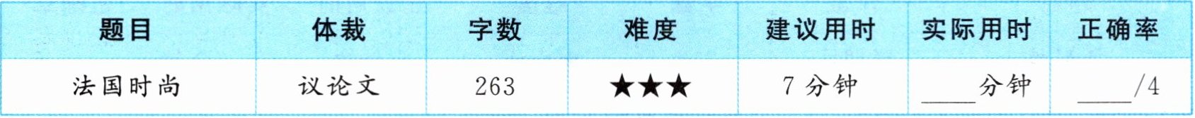 )4. What can be the best title for the passage?A. French fashion in my eye