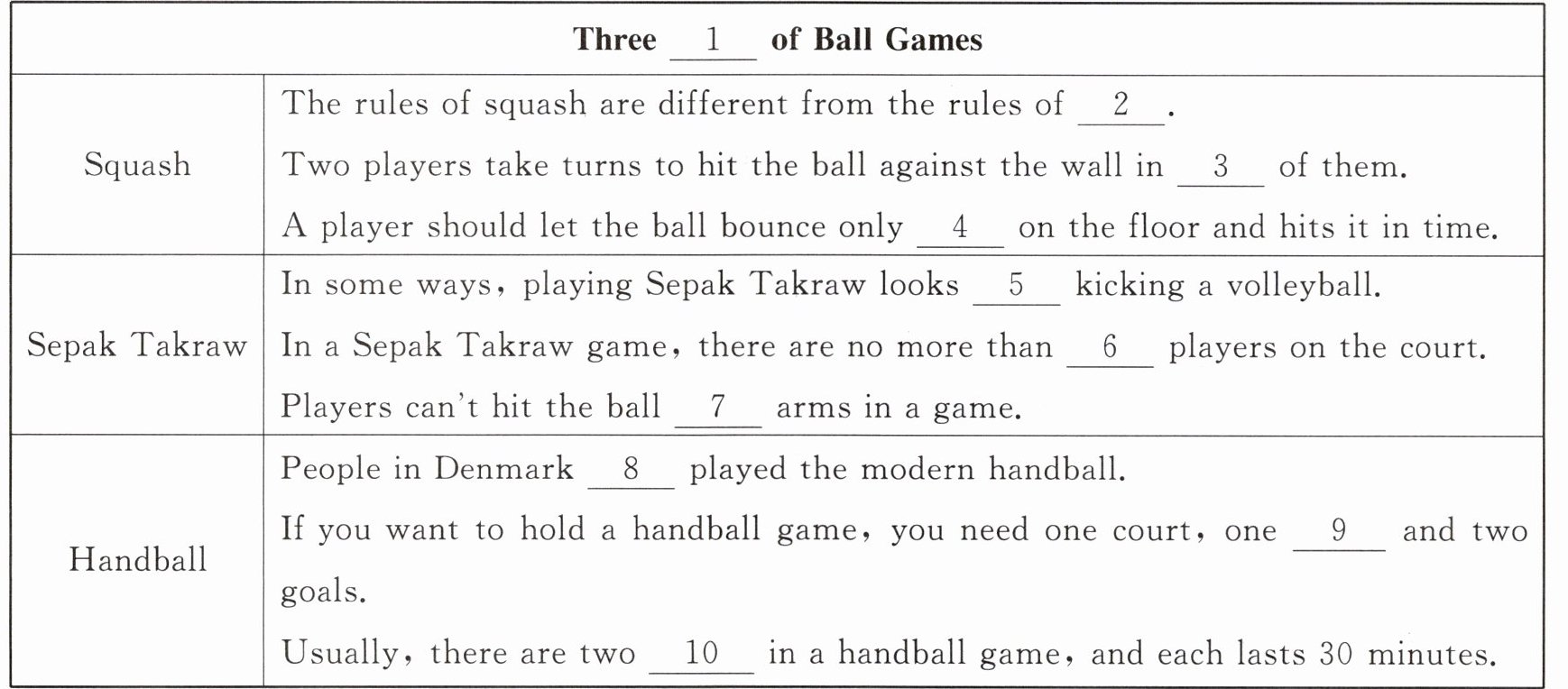 1. Kinds 2. tennis 3. front 4. once 5. like 6. eight 7. with 8. first 9. ball 10. halves