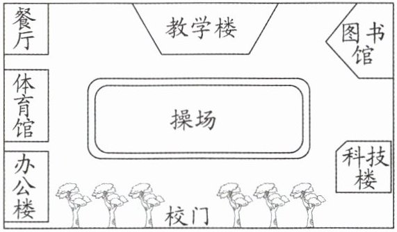 In the centre of our school,there is a big playground where we play sports and do exercise. To the north,there is a teaching building. On the left side of it,you can find the dining hall,and next to it is the gym. There is an office building in front of the gym. On the right side of the playground are the library and the science building. At the front,there is the school gate with trees along the road.