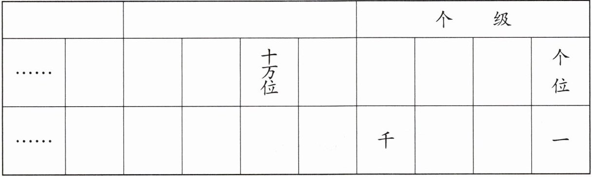 (表格从左到右,从上到下依次为)千万位;百万位;万位;千位;百位;十位;千万;百万;十万;万;百;十