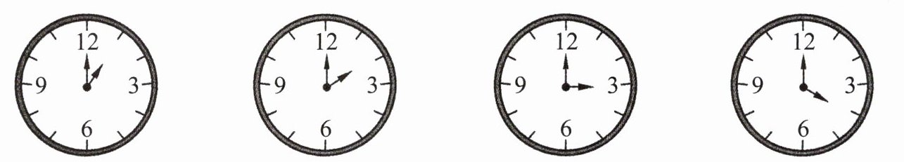 2. 看钟面上的时刻,写出分针和时针所成的角的度数。