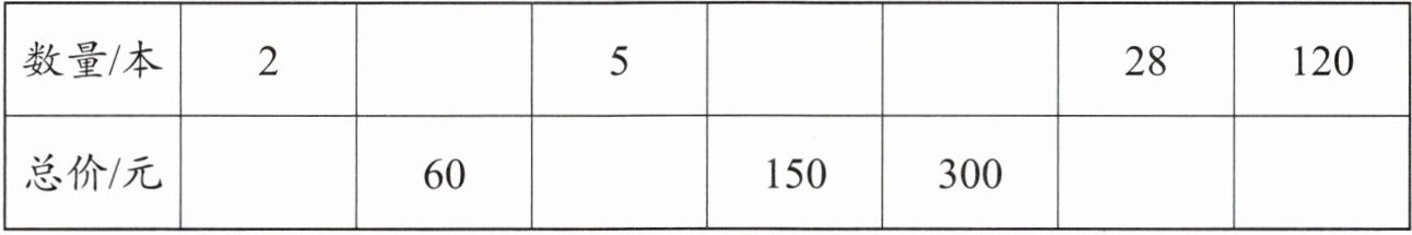 2. 已知每本绘本故事书15元,请把下表补充完整。