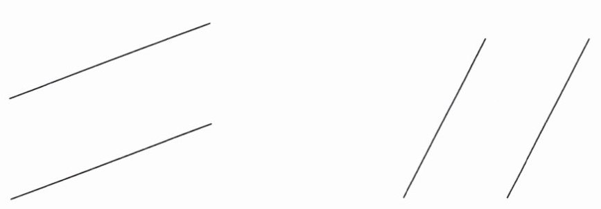 (1) 两条平行线之间可以画出(