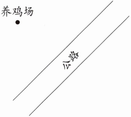 3. 养鸡场到公路要修一条路,怎样设计路线最短?画一画。