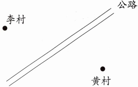 1. 画出一条从李村到黄村最近的路线,并量出其长度;再画出一条从黄村到公路最近的路线,并量出其长度。