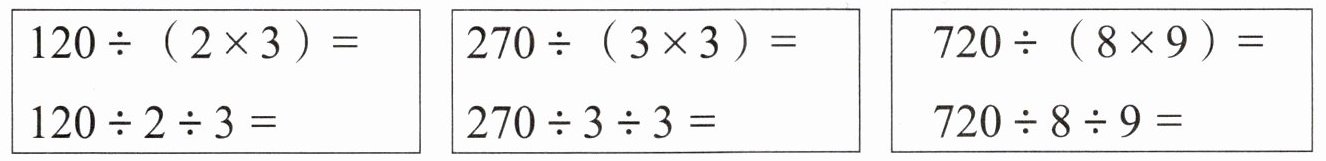 $600÷(3×5)$ $640÷(8×4)$ $480÷16$