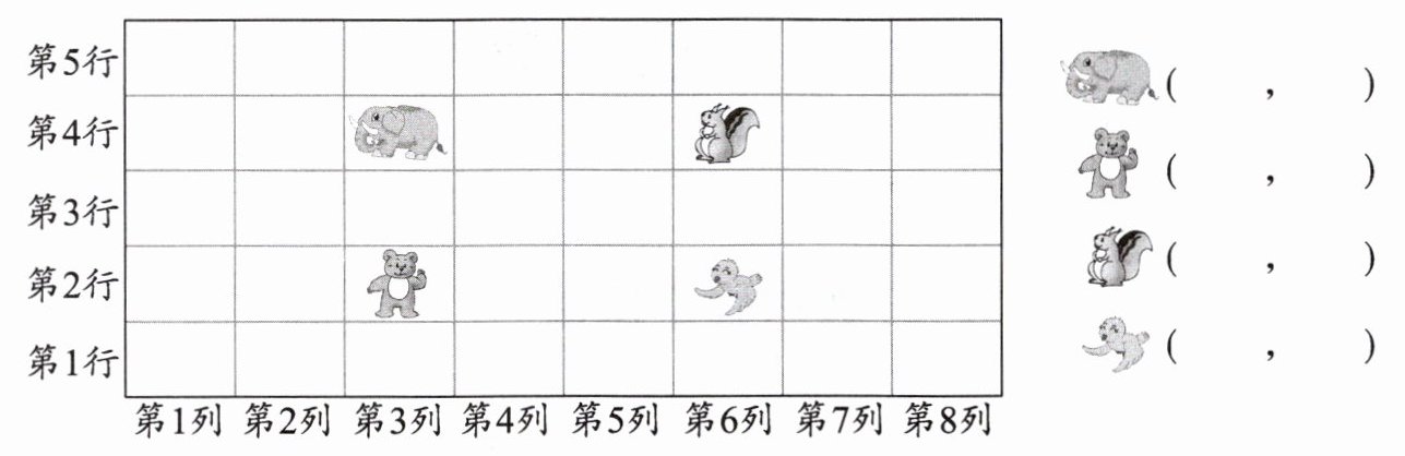 2. 小明家厨房的一面墙上贴着瓷砖(如下图),你能用数对表示出四块装饰瓷砖所在的位置吗?