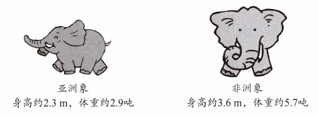 (1) 非洲象的身高是亚洲象的多少倍?(得数保留一位小数)