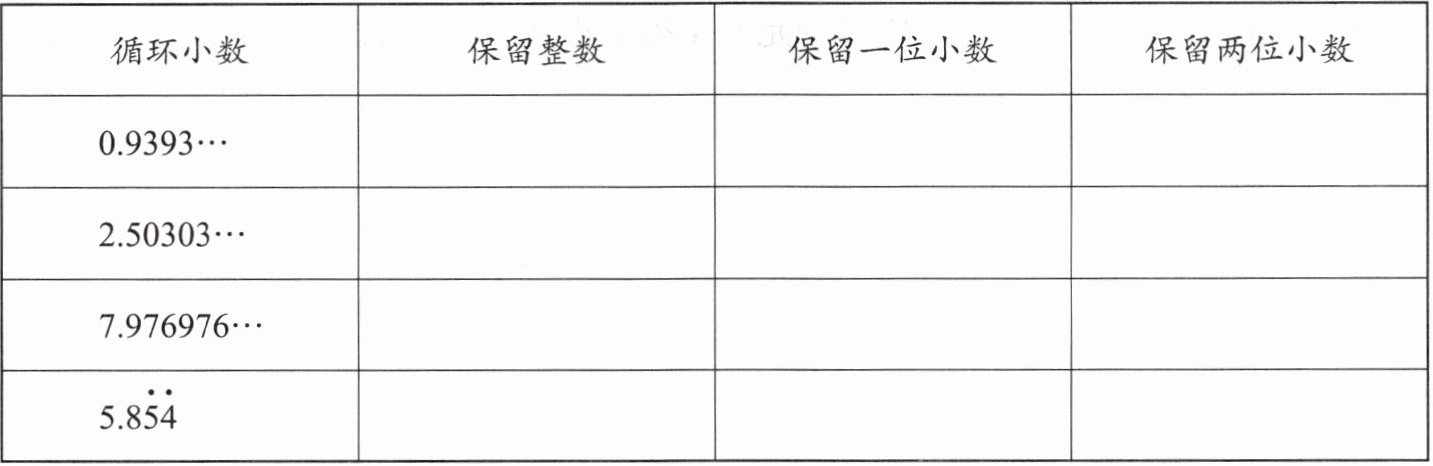 7. 用四舍五入法按要求写出下面各循环小数的近似值。