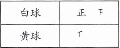 袋中装有白球和黄球若干个,每次从袋中摸出一个球后再放回去,一共摸10次。右表是同学们做摸球游戏的记录。