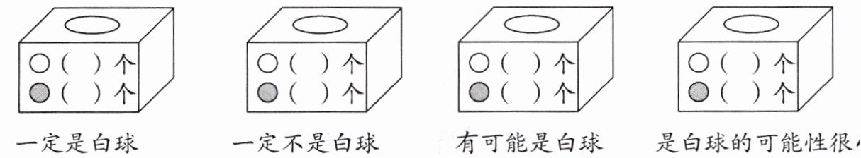 7. 下面有4个箱子,每个箱子里都放了10个同样大小的球(分别摸出1个球)。请根据要求填出每种球的个数。