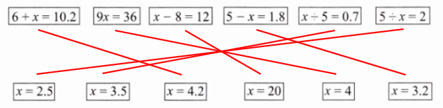 1. 把方程与它的解连起来。